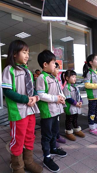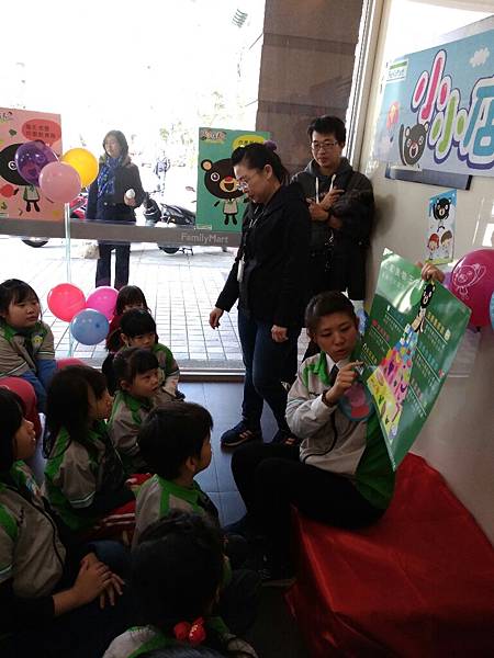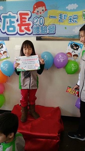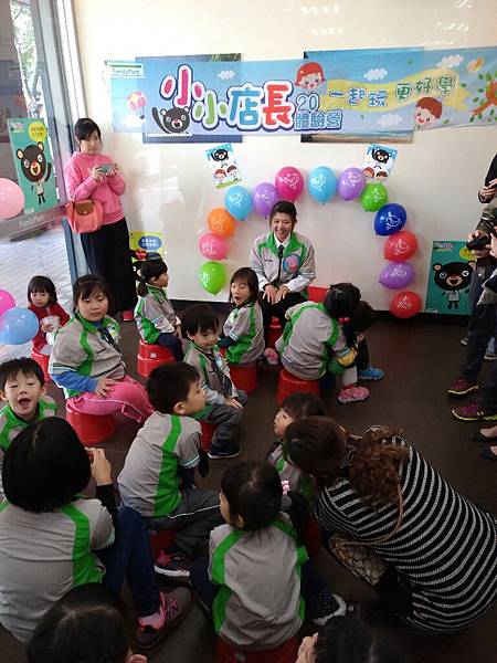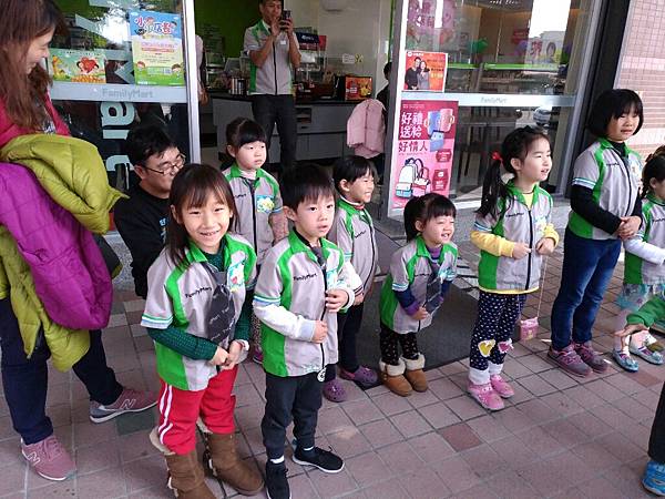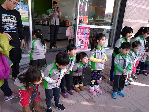小小店員的第一個步驟當然就是要學會禮儀, 看著小朋友來拍站的站在門口 就知等一下的步驟是什麼
