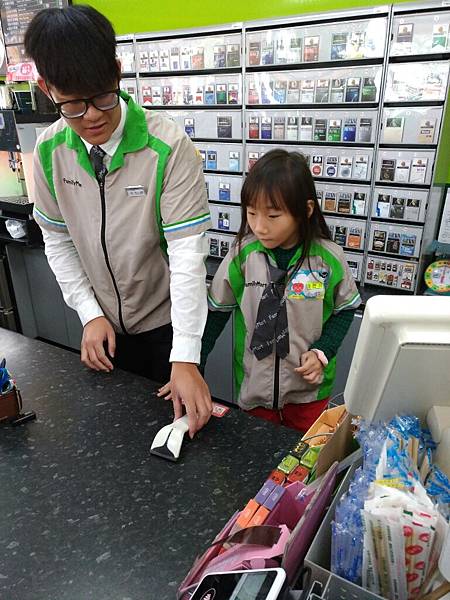 刷完條碼報上金額,就是要爸爸媽媽付錢囉 其實覺得 這類型的體驗活動最大的賣點就是爸爸媽媽會為小朋友 買東西,讓他們來結帳,這無形中也是幫便利商店增加收入