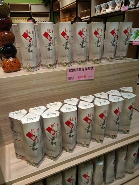 架上也有陳列實際商品,例如這有機酵素多醣體