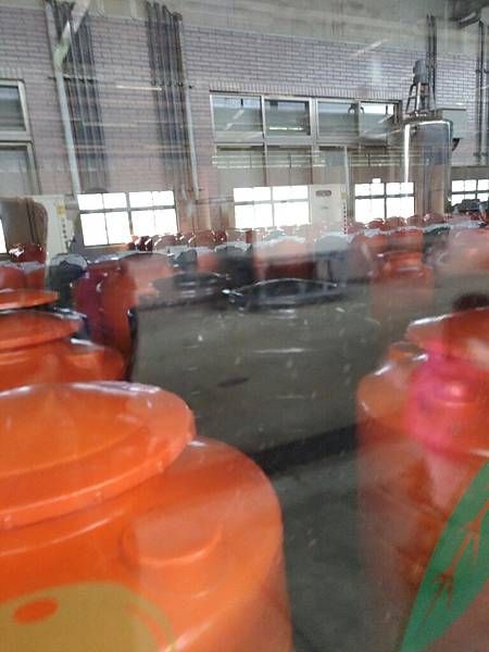 廠區的另一個空間外頭還有介紹 這所有的作業流程,看到 窗戶那彷彿有 許多 桶裝