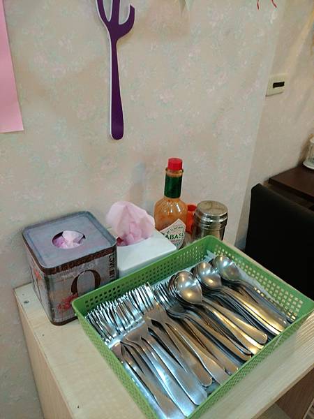 餐具及其他佐料 就在左後方, 所以是自行拿取的喔