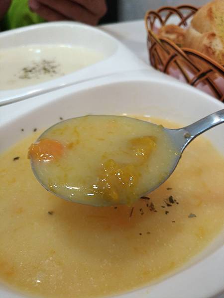 雖說不是很多料的湯品,不過那南瓜 特殊的甜香味,在整體品嘗的過程中是一直不斷的讓你感覺相當的 香濃