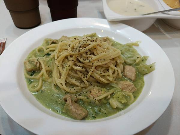 隆爸說就是屬於白醬口味的 奶油濃湯, 只是味道比較淡, 不過Coco個人覺得味道還算濃,只能說畢竟隆爸是勞力工作者,所以他個人會覺得味道比較淡, 唉唷吃這一回是真的是見仁見智不過,相信習慣Coco的分享就知道, Coco也不會太浮誇的 分享