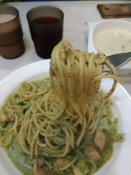 幸福角落的青醬,Coco個人覺得還蠻特別的,因為沒有一般你所印像中濃濃的 九層塔和羅勒的生味,比較偏奶味, 是屬於種非常獨特的青醬大部份的醬淡,但青味很重,現場有聽到老闆在用果汁機打醬的聲音(可惜沒拍到XD) 真好奇是如何把青味除去的,所以若是害怕青醬的民眾其實幸福角落可以滿足你對青醬的需求