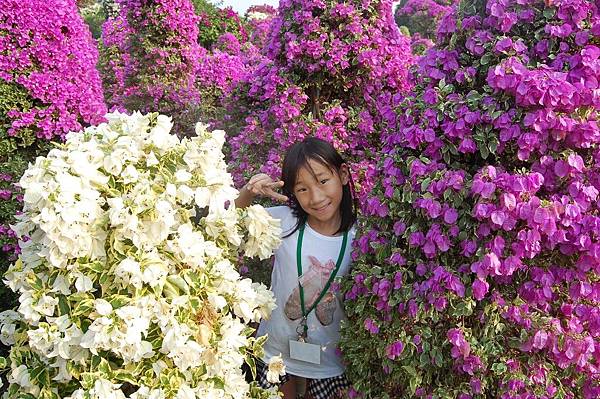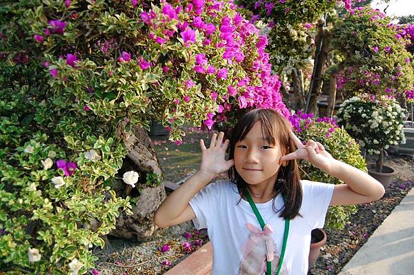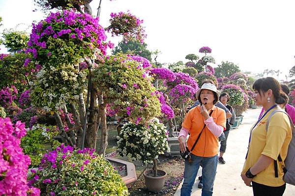 在導覽人員的解說之下你可發現有些九重葛盆栽可是還有將它塑形成各式的動物隱身在裡頭