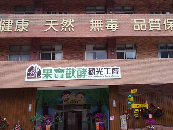 而果寶歡酵觀光工廠主要就是從產地到餐桌,處處 呵護,滴滴用心,為的就是找回最原始的健康, 所以在觀光工廠外頭就大大的寫著健康。天然。無毒。品質保證, 讓人感受到果寶歡酵觀光工廠十分大器的為民眾 的 飲食把關