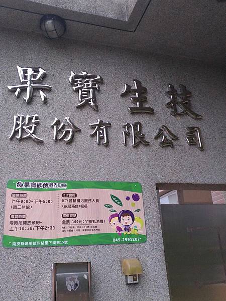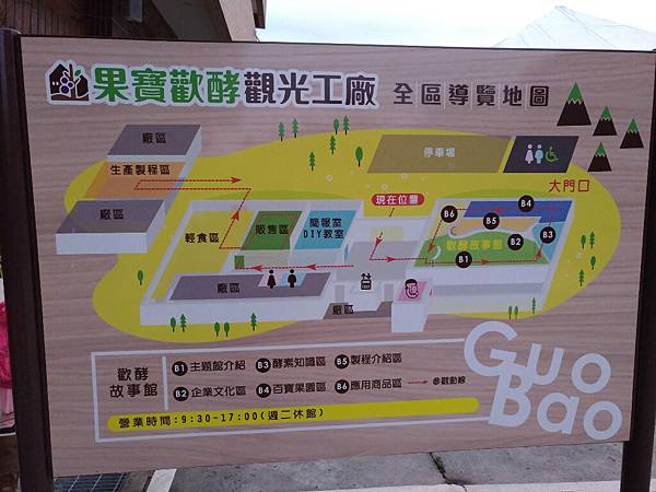 果寶歡酵觀光工廠營業時間可是上午9點到下午5點,週二是公休日 ,若要體驗DIY可至櫃檯報名,而入場可是需要 門票100元,當然這是可以折抵消費的,不過目前是試營運階段,試營運目前所知預計到3月底, 所以要來 感受 環境請上果寶歡酵觀光工廠 的粉絲專頁詳加了解