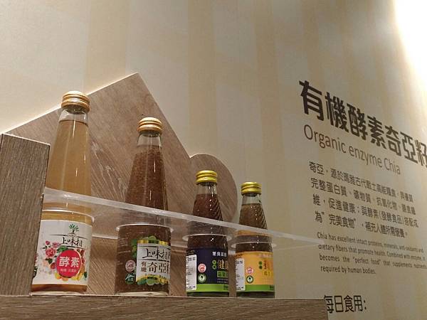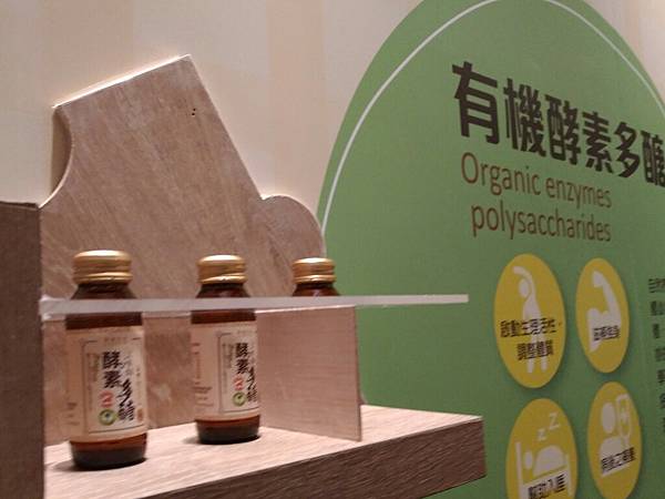 架上也有陳列實際商品,例如這有機酵素多醣體