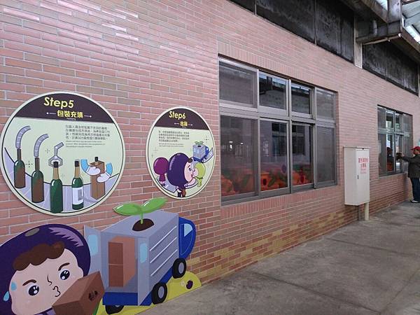 廠區的另一個空間外頭還有介紹 這所有的作業流程,看到 窗戶那彷彿有 許多 桶裝