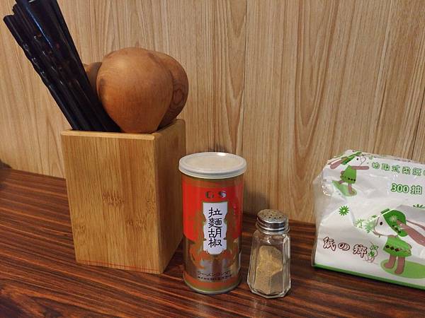而在每桌上其實就有簡單的木湯匙及筷子, 不過相當可愛的是居然還有拉麵胡椒, Coco試過就是胡椒粉,哈哈哈