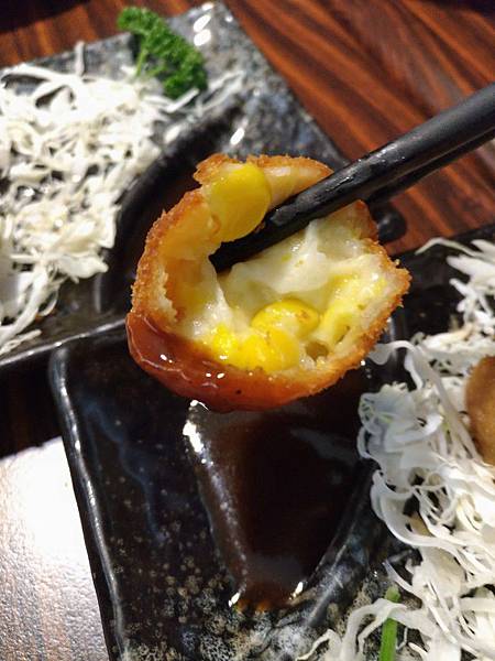 由前到後築地手工花枝燒&函館奶油玉米球
